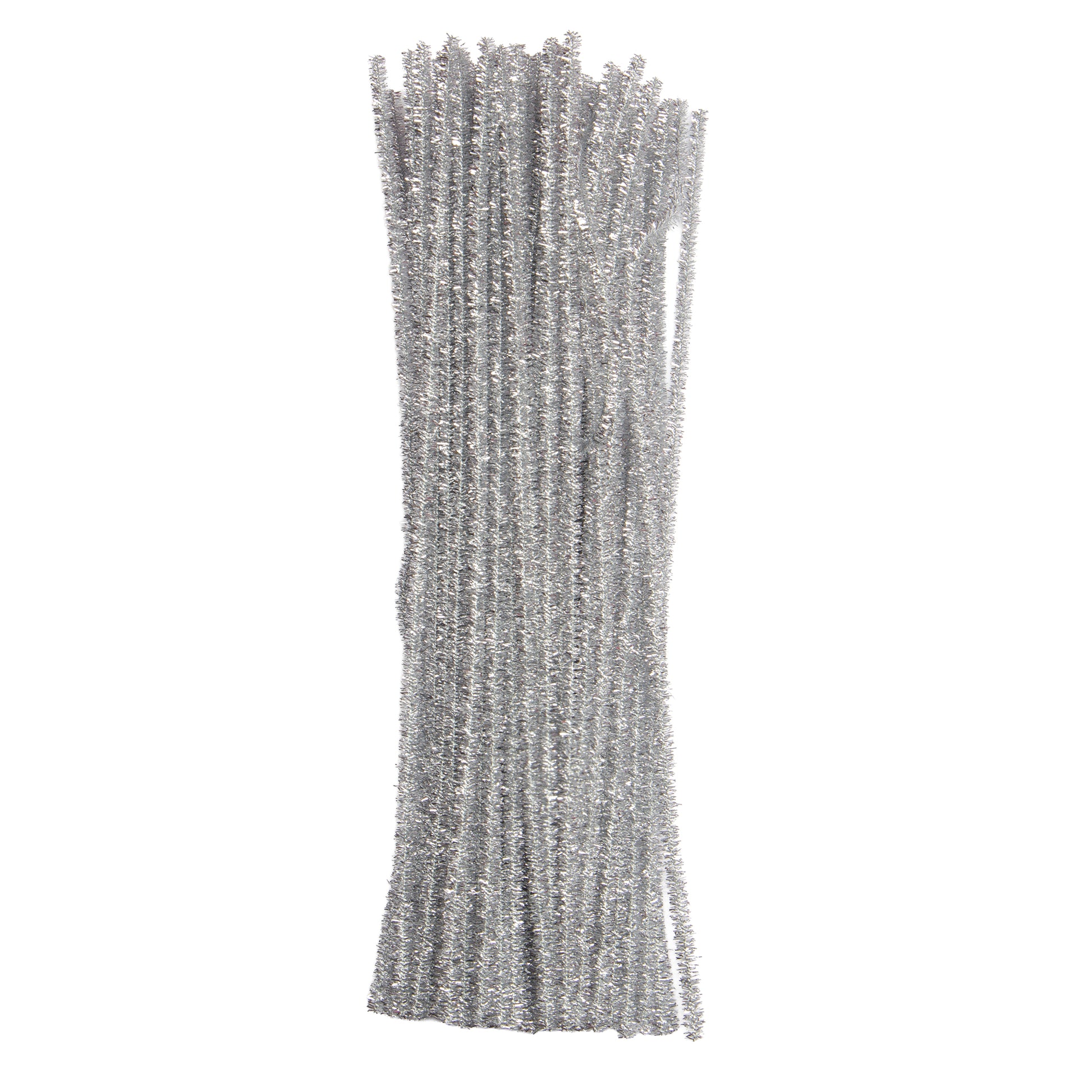 Pack of 100 Colourful Tinsel Stem Pipe Cleaners – 0.6 x 30cm Craft Wires - Silver